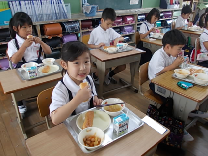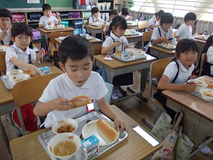 今日は小学校生活2度目の揚げパン!みんな,とってもいい表情でいただいていました♪