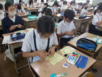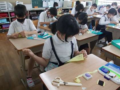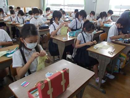 裁縫の学習を進めています。今日は「波ぬい」に挑戦しました。みんな一針一針丁寧に作業を進めていました♪
