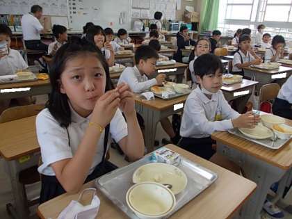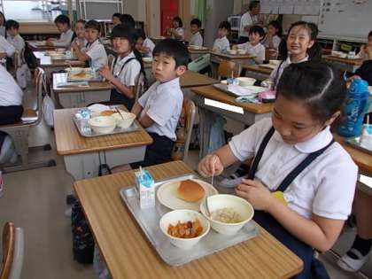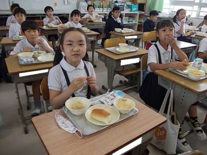 給食の時間が始まりました。今日もおいしくいただきましょう♪