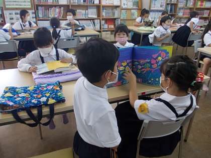6月9日(木) 1年生図書「早く読みたいね」♪