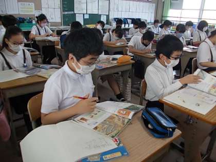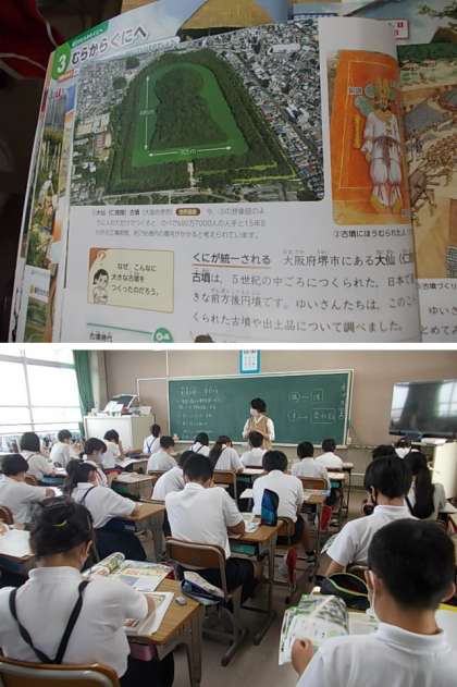 社会で「古墳」の学習を進めています。教科書になんとご近所の「大仙古墳」が登場しています。写真に自分の家が移っている児童もいました。なんとも,うれしいよね♪
