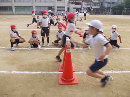 今日はスタートの学習をがんばりました。先生の合図とともに勢いよく飛び出すスタートを「ロケットスタート」と呼ぶことにします。ロケットすスタートめざしてがんばろう♪