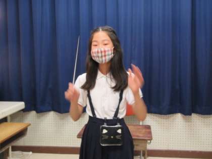 全校朝礼が始まりました。心を込めて校歌の斉唱をしています♪