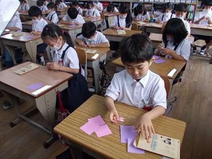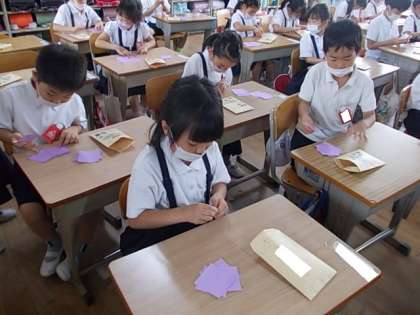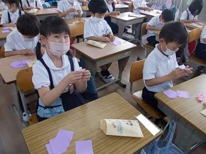 今の季節の代表的なお花,あじさいを作っています。最近いろんなところで私たちの目を楽しませてくれていますね。みんなの作品も楽しみです♪