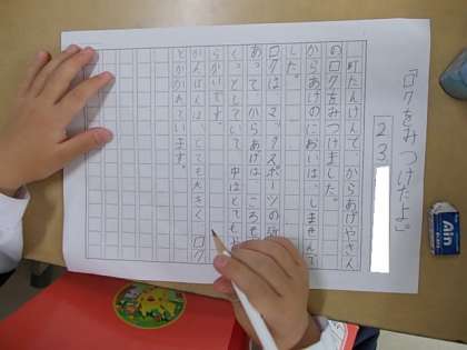 先週実施した町たんけんをふりかえって,みんなに伝えたいことを文章で書きだしました。