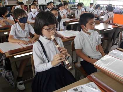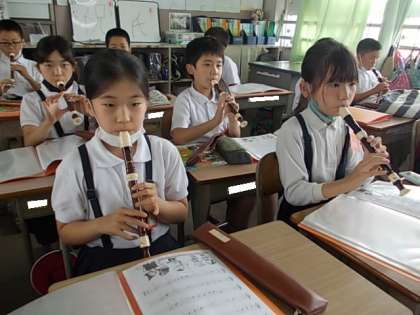 リコーダーで「エーデルワイス」を演奏しています。速いテンポからゆったりとしたテンポへの移行がとてもむずかしい曲です。みんなしっかり練習していました♪