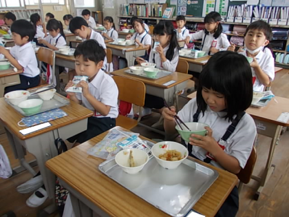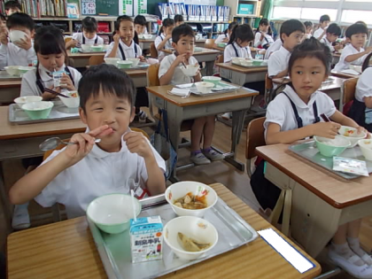 給食の時間が始まりました。今日もおいしくいただきましょう♪