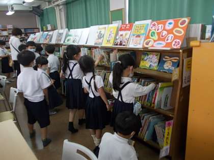 6月15日(水) 1年生図書「今日はどんな本を借りようかな」♪