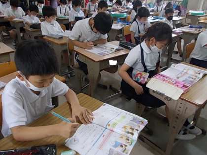 時間の学習です。午前,正午,午後の流れを確認し,いろんな時間の問題に取り組んでいました♪