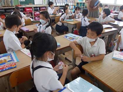 7月1日(金) 朝の学習タイム1年生算数「計算カードを使って」♪