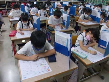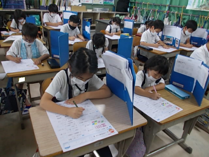 算数のテストに取り組んでいます。集中してがんばっています♪