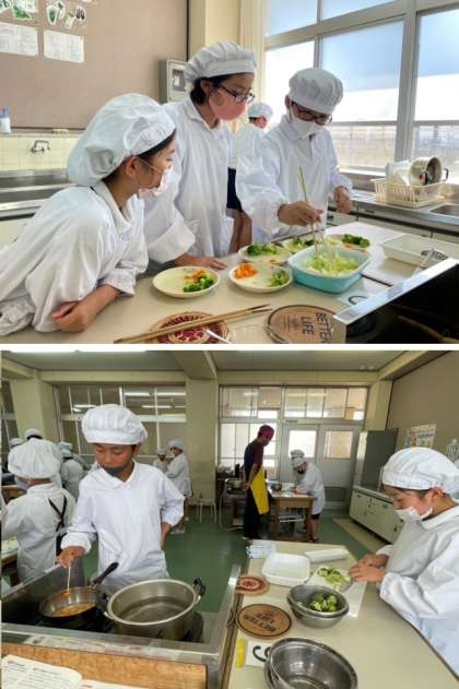 今日の調理実習は「ゆで野菜」でした。食べやすいサイズに野菜を切り,おいしい触感が味わえるよう,時間やゆで具合を考えて作りました。