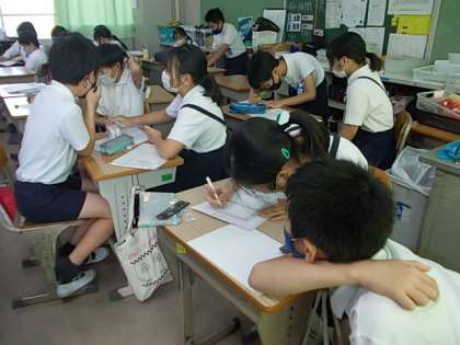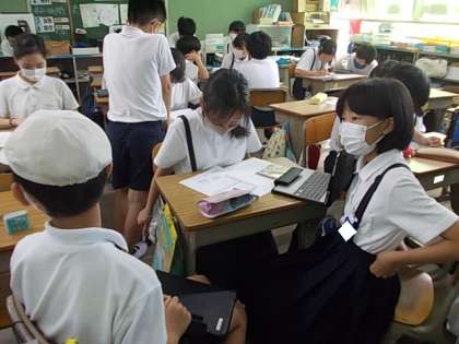 6年生が次のたてわり活動に向けての準備を進めていました。6学年の異年齢が集まります。みんなにとって楽しく,わかりやすい活動を探っています♪