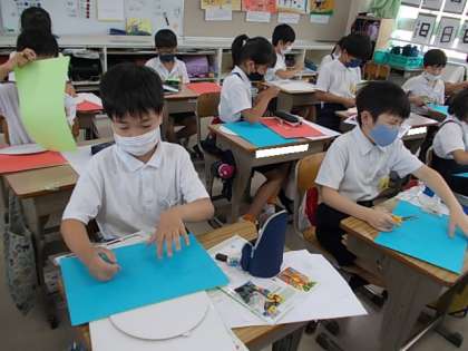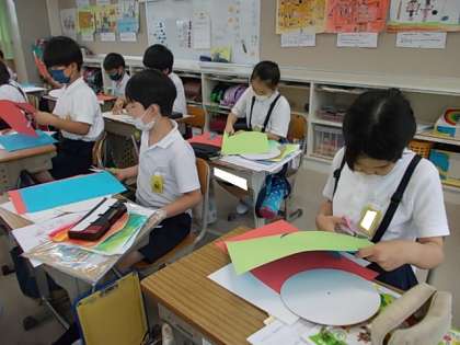 7月4日(月) 3年生図工「くるくるランド作成中」♪