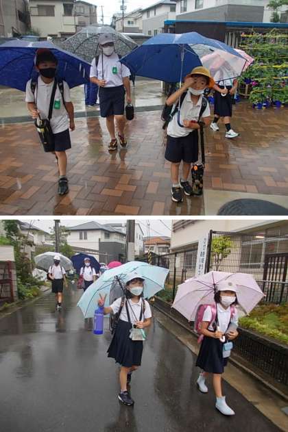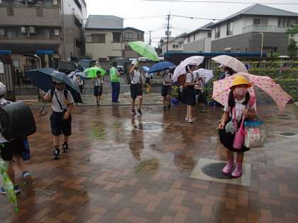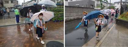 時折強い雨が降る中での登校となりました。みんな,元気に登校してきてくれています♪