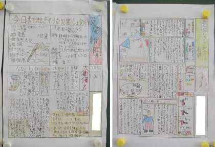 これまで学習してきた自然災害,そして防災についてまとめています。みんな,こだわりを持って丁寧に作成しています♪