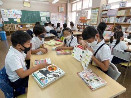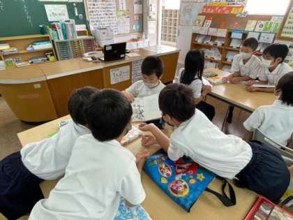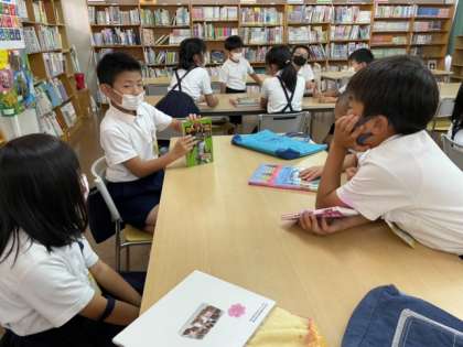 今日は各机で,最近気に入っている本,おすすめしたいと思っている本を紹介していました。みんな,立派に自分の思いを伝えられています♪