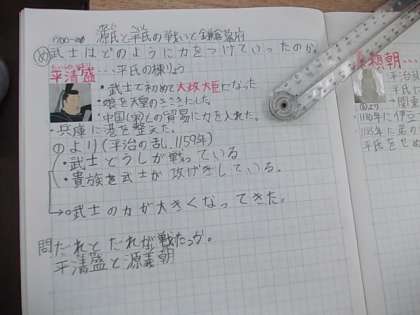 貴族の社会が崩壊し,武士の世の中へとなっていく過程を学習しています。源頼朝については,NHKのドラマでよく知っている人が多いようです。
