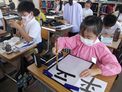 9月6日(火) 4年生書写「バランスに気を付けて」♪