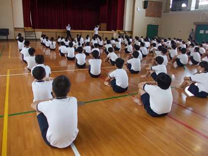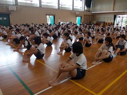 体育館では組体操の要素を生かした表現運動の練習をします。みんな,気持ちを整え,練習に挑んでいます♪