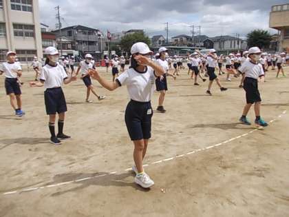 外ではリズムダンスの練習です。とても速いテンポの楽曲に合わせ,リズミカルに踊っています。さすがです♪