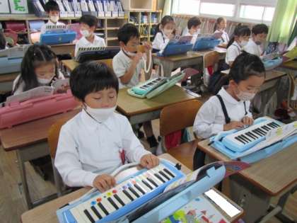 10月6日(木) 1年生音楽「2部合奏にチャレンジ」♪