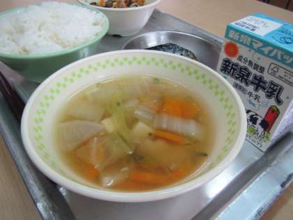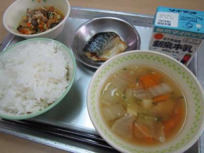 まぜたらきのこごはんには,秋の味覚であるきのこを3種類使っています。えのきたけ,しめじ,しいたけの3種類です。秋の味をあじわってください。