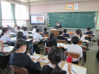 計算のいろんなきまりについて学習しています。今日は分配法則!図を見ながら考えていました♪
