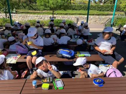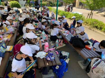 朝早くからお弁当づくりを頑張ってくださった保護者のみなさまありがとうございました!感謝の気持ちを込めて,「いただきます」!
