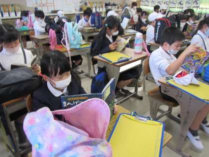 もうすぐ校外学習に出かけます。出発までの時間,しっかり読書に取り組んでいました♪