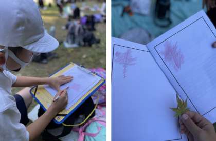 葉っぱのフロッタージュを楽しみ枚した。こんなにきれいに映るものなのですね♪
