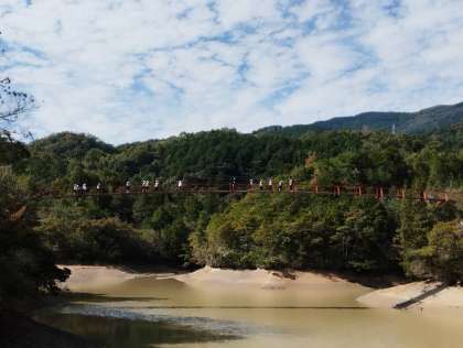 杉村公園の中には本格的なつり橋があります。渡れるかな。無理しないでね♪