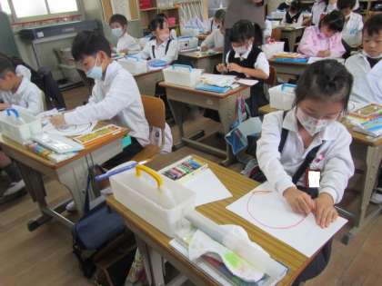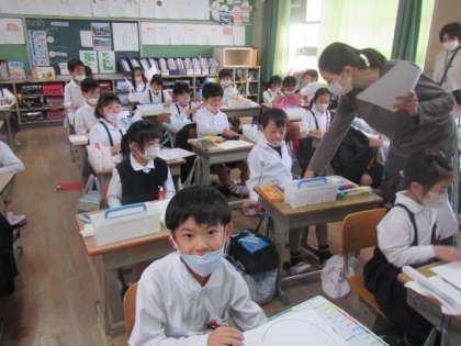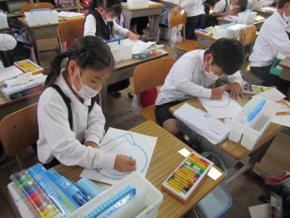 10月25日(火) 1年生図工「カラフルなお家」♪