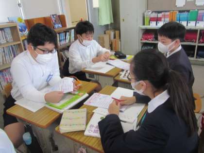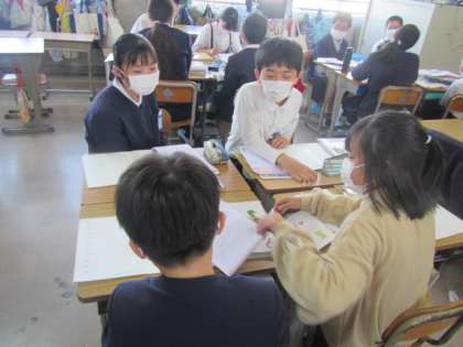 拡大,縮小の考え方を使うといろんな問題がより簡単に考えられるようになりますね。応用問題にグループで取り組んでいました♪