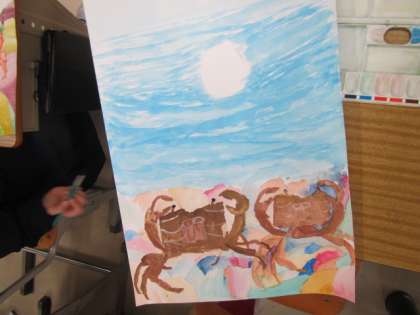 物語「やまなし」の世界を描いでいます。自分で選んだ場面の水の中の世界を描きます。丁寧に作業を進めています♪