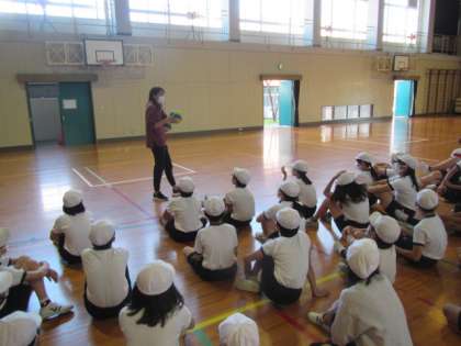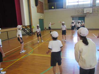 10月26日(水)6年生体育「バレーボール」の パス練習