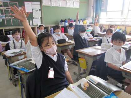 4組では1組の先生が。「やりぬことの大切さ」についてみんなで考えていました。たくさんの人が手をあげ,自分の考えを伝えようとがんばっていました♪