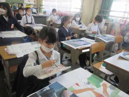 10月28日(金) 4年生図工「友だちの絵を見て」♪