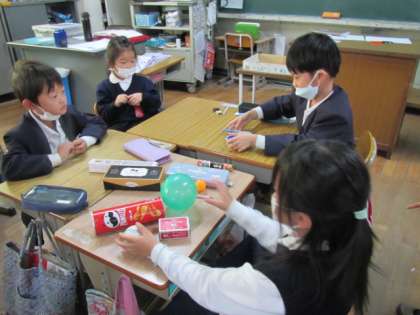 はこの形の学習です。おうちから持ってきたたくさんの箱たちを形に着目して仲間分けしてみよう。どんな仲間に分けられるかな♪