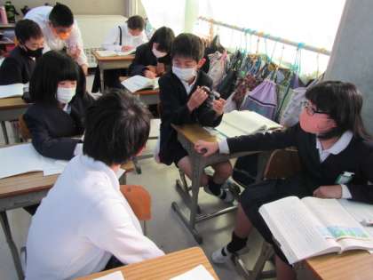 提示資料と本文の関係を考えながら読み進めています。教科書に提示されているたくさんの資料と触接かかわる文を結びつけていました♪