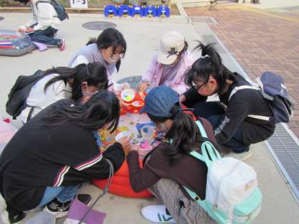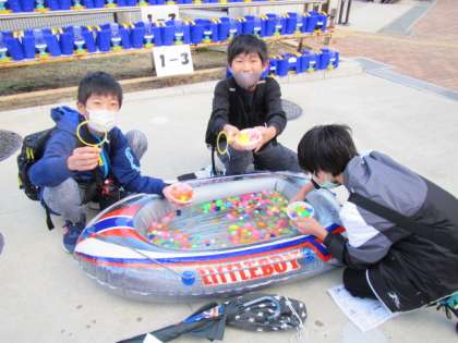 寒い中でもスーパーボール拾い,楽しんでいます♪