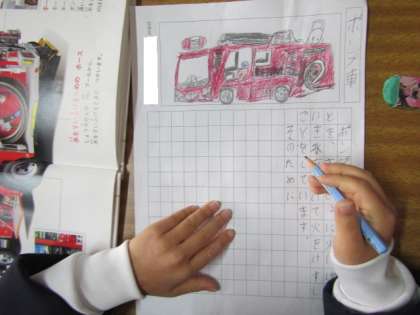 じどう車比べのまとめの学習,がんばって書き進めています。