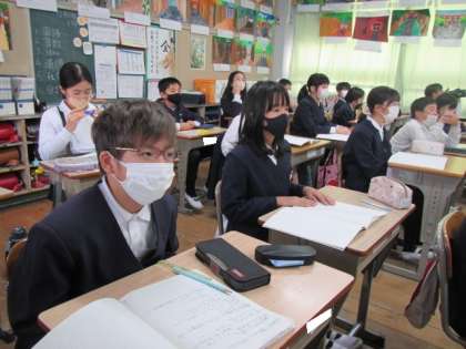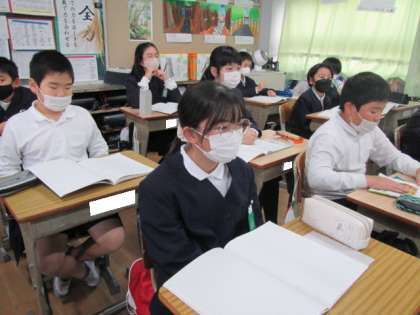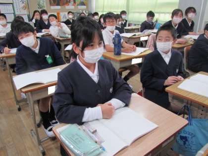 外国とのもののやり取り「貿易」についての学習です。お金の損得だけでない問題についても考えていました。先生のお話を真剣な表情で聞いています♪