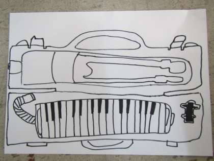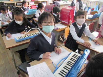 身の回りの物を描きます。けんばんハーモニカやランドセルなど自分で選んだものを一生懸命デッサンしていました。