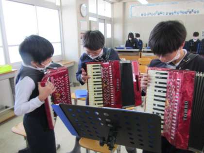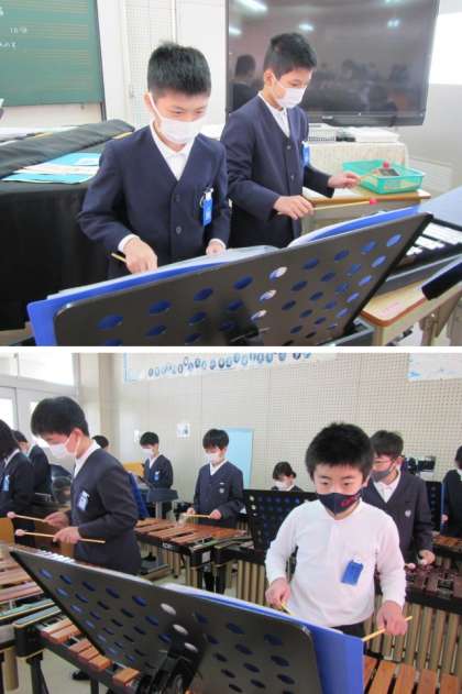 各クラス,旅立ちコンサートに向けての練習に一生懸命取り組んでいます。4組は「パイレーツオブカリビアン」のテーマを演奏します♪