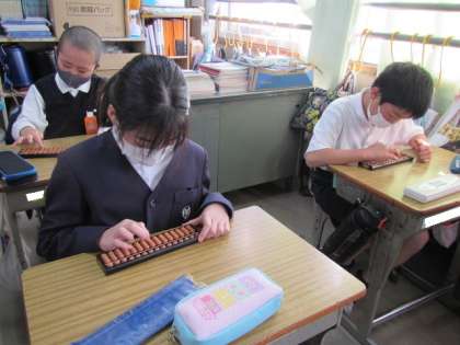 そろばんの学習です。それぞれの珠の意味を理解し,計算に使えるようになるといいですね♪