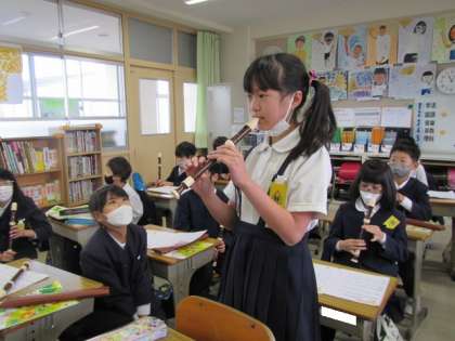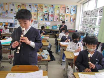 土曜日,日曜日にお家でしっかり練習してきました。「マリオのテーマ」を発表します。みんなとっても上手に演奏できていました♪