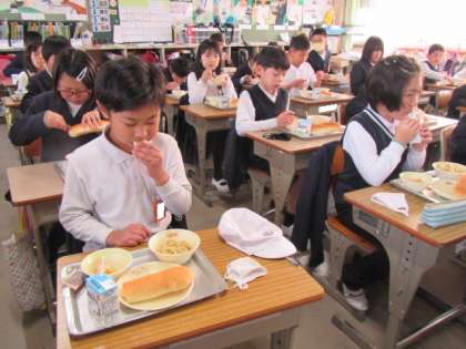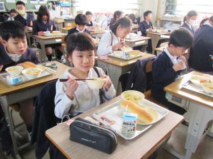 給食の時間が始まりました。今日もおいしくいただきましょう♪