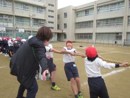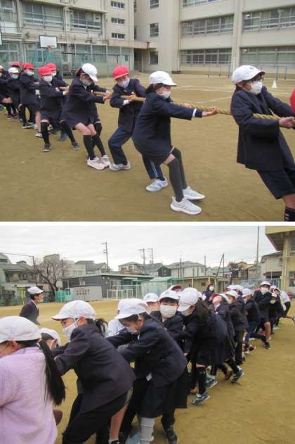 4年生がクラスマッチを実施しました。最終種目は,クラス対抗の綱引きです。どの組も全力を出し切っていました♪