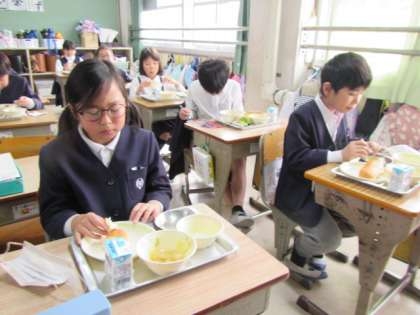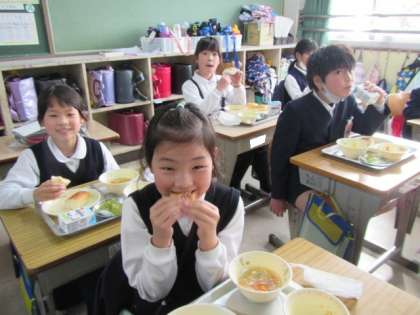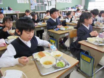 給食の時間が始まりました。今日もおいしくいただきましょう♪